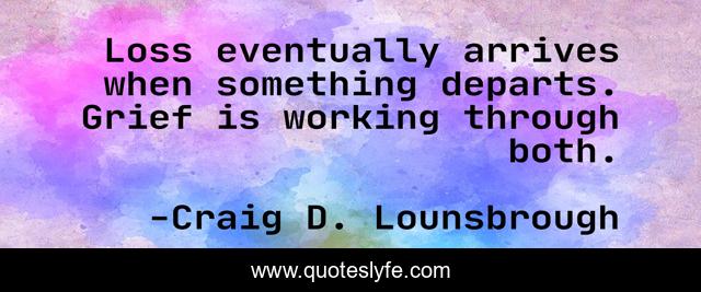 "Craig D. Lounsbrough Quotes." Quoteslyfe.com, 2025. Fri. 05 Dec. 2025. <https://www.quoteslyfe.com/quote/Loss-eventually-arrives-when-something-departs-Grief-122617>.
