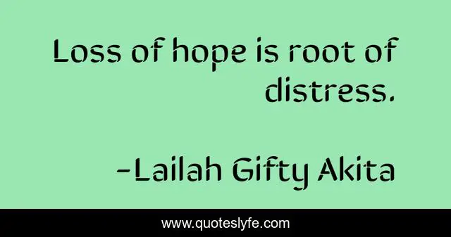 This page presents the quote "Loss of hope is root of distress.". Author of this quote is Lailah Gifty Akita. This quote is about inspiring, distress, hope,.