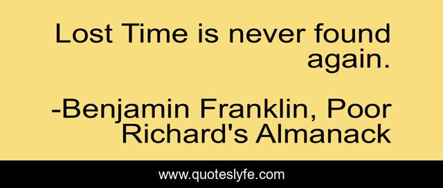 "Benjamin Franklin, Poor Richard's Almanack Quotes." Quoteslyfe.com, 2025. Fri. 05 Dec. 2025. <https://www.quoteslyfe.com/quote/Lost-Time-is-never-found-again-12298>.
