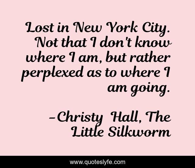 "Christy Hall, The Little Silkworm Quotes." Quoteslyfe.com, 2025. Sat. 06 Dec. 2025. <https://www.quoteslyfe.com/quote/Lost-in-New-York-City-Not-that-215067>.