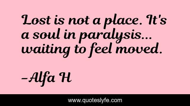 This page presents the quote "Lost is not a place. It's a soul in paralysis... waiting to feel moved.". Author of this quote is Alfa H. This quote is about enthusiasm, inspirational, lost, hurt,.