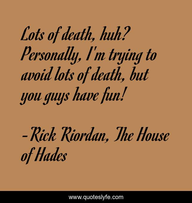 "Rick Riordan, The House of Hades Quotes." Quoteslyfe.com, 2025. Mon. 08 Dec. 2025. <https://www.quoteslyfe.com/quote/Lots-of-death-huh-Personally-I-m-244638>.