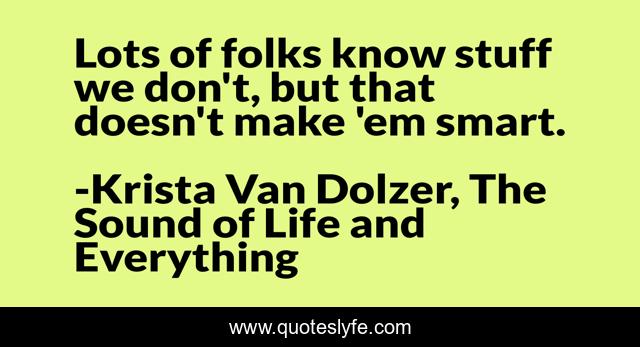 This page presents the quote "Lots of folks know stuff we don't, but that doesn't make 'em smart.". Author of this quote is Krista Van Dolzer, The Sound of Life and Everything. .