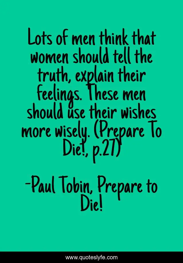 Lots of men think that women should tell the truth, explain their feelings. These men should use their wishes more wisely. (Prepare To Die!, p.27)