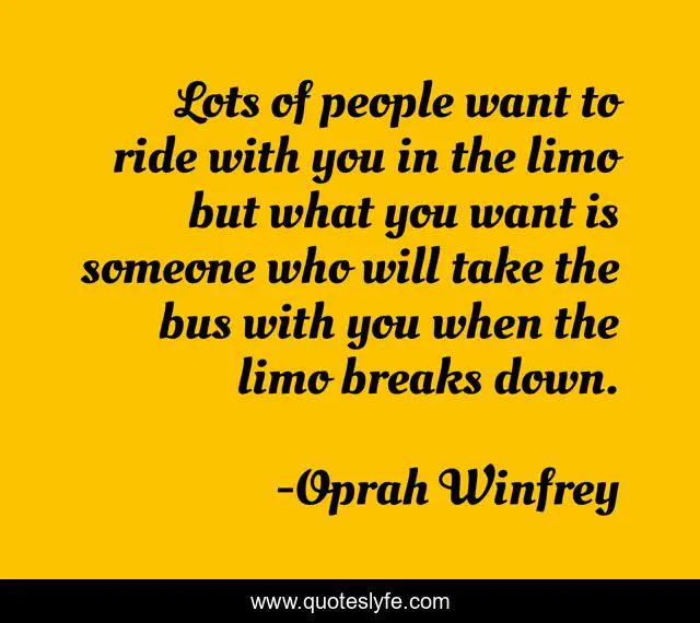 This page presents the quote "Lots of people want to ride with you in the limo but what you want is someone who will take the bus with you when the limo breaks down.". Author of this quote is Oprah Winfrey. .