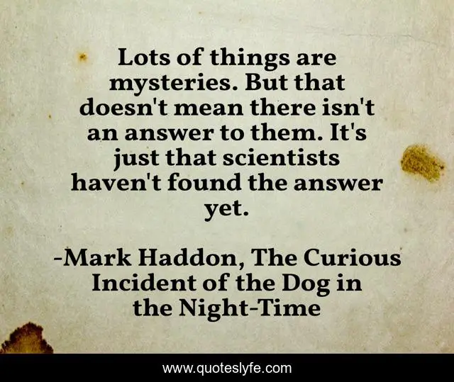 "Mark Haddon, The Curious Incident of the Dog in the Night-Time Quotes." Quoteslyfe.com, 2025. Fri. 05 Dec. 2025. <https://www.quoteslyfe.com/quote/Lots-of-things-are-mysteries-But-that-145944>.