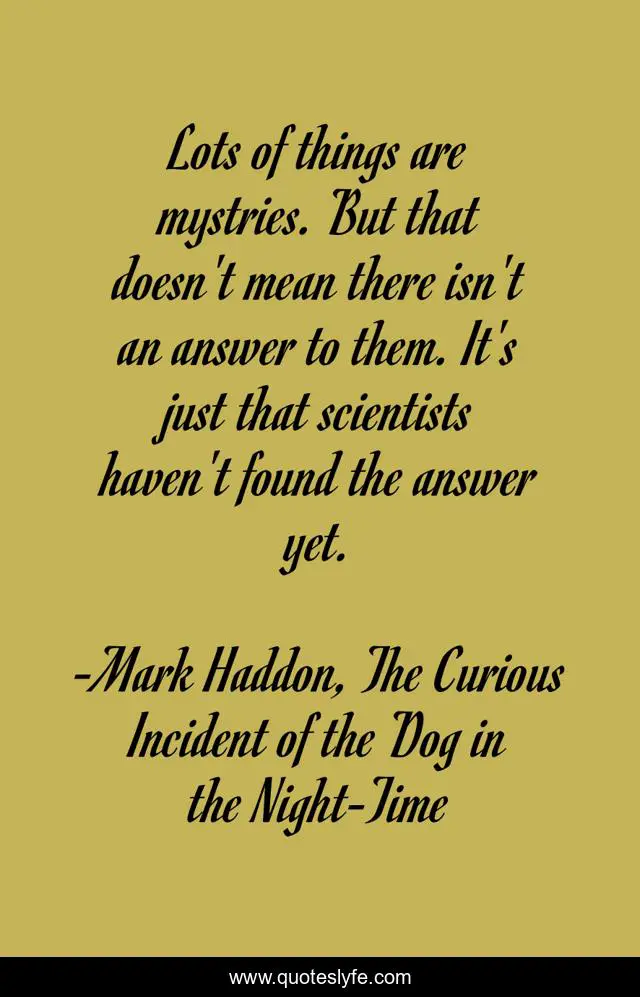 "Mark Haddon, The Curious Incident of the Dog in the Night-Time Quotes." Quoteslyfe.com, 2025. Sat. 06 Dec. 2025. <https://www.quoteslyfe.com/quote/Lots-of-things-are-mystries-But-that-42075>.