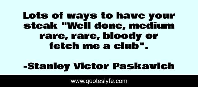 This page presents the quote "Lots of ways to have your steak "Well done, medium rare, rare, bloody or fetch me a club".". Author of this quote is Stanley Victor Paskavich. .