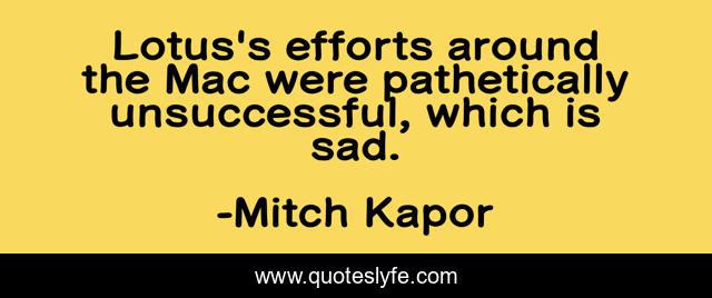 This page presents the quote "Lotus's efforts around the Mac were pathetically unsuccessful, which is sad.". Author of this quote is Mitch Kapor. This quote is about efforts, which, unsuccessful,.