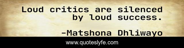 "Matshona Dhliwayo Quotes." Quoteslyfe.com, 2025. Sat. 06 Dec. 2025. <https://www.quoteslyfe.com/quote/Loud-critics-are-silenced-by-loud-success-83743>.