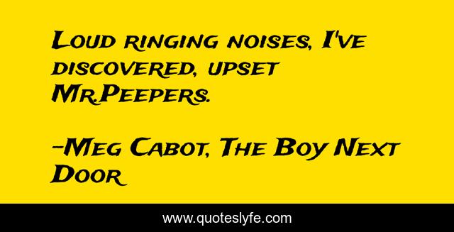 "Meg Cabot, The Boy Next Door Quotes." Quoteslyfe.com, 2025. Sat. 06 Dec. 2025. <https://www.quoteslyfe.com/quote/Loud-ringing-noises-I-ve-discovered-upset-222580>.