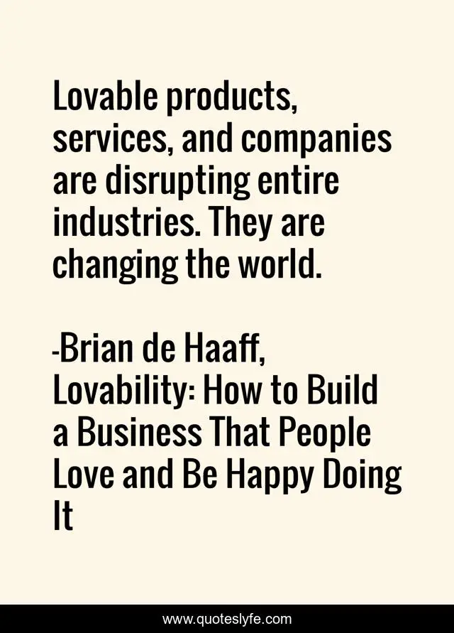 "Brian de Haaff, Lovability: How to Build a Business That People Love and Be Happy Doing It Quotes." Quoteslyfe.com, 2025. Sat. 06 Dec. 2025. <https://www.quoteslyfe.com/quote/Lovable-products-services-and-companies-are-disrupting-64384>.