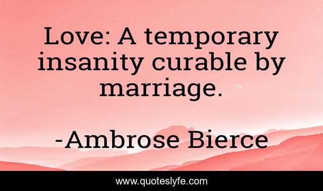 "Ambrose Bierce Quotes." Quoteslyfe.com, 2025. Mon. 08 Dec. 2025. <https://www.quoteslyfe.com/quote/Love-A-temporary-insanity-curable-by-marriage-314797>.