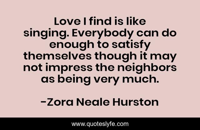 This page presents the quote "Love I find is like singing. Everybody can do enough to satisfy themselves though it may not impress the neighbors as being very much.". Author of this quote is Zora Neale Hurston. .