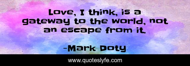 This page presents the quote "Love, I think, is a gateway to the world, not an escape from it.". Author of this quote is Mark Doty. This quote is about living, life, love, philosophy, feelings, affection,.