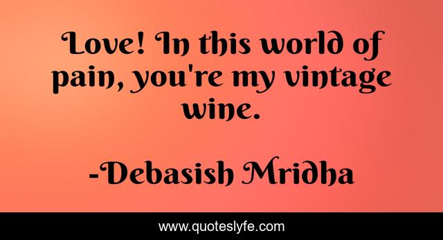 This page presents the quote "Love! In this world of pain, you're my vintage wine.". Author of this quote is Debasish Mridha. This quote is about life, love, knowledge, inspirational, intelligence, philosophy, wisdom, quotes, affection,.