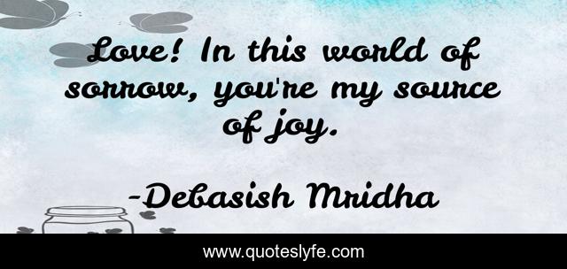 This page presents the quote "Love! In this world of sorrow, you're my source of joy.". Author of this quote is Debasish Mridha. This quote is about life, love, knowledge, inspirational, intelligence, philosophy, wisdom, quotes, affection,.