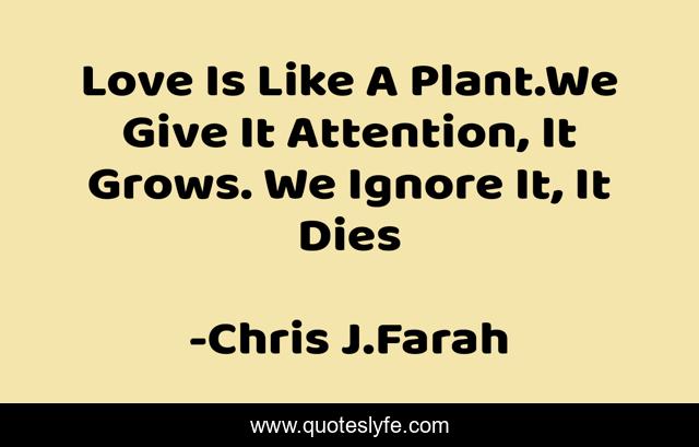 This page presents the quote "Love Is Like A Plant.We Give It Attention, It Grows. We Ignore It, It Dies". Author of this quote is Chris J.Farah. This quote is about best-ever, humor, romantic, love, everyday-life, about-life, inspirational, true-to-life, enthusiasm,.
