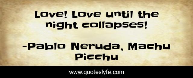 This page presents the quote "Love! Love until the night collapses!". Author of this quote is Pablo Neruda, Machu Picchu. This quote is about love, affection,.
