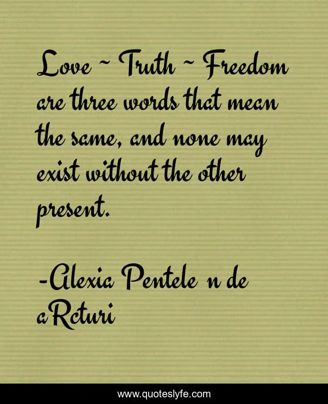 "Alexia Penteleόn de aRcturi Quotes." Quoteslyfe.com, 2025. Sun. 07 Dec. 2025. <https://www.quoteslyfe.com/quote/Love-Truth-Freedom-are-three-words-that-118758>.