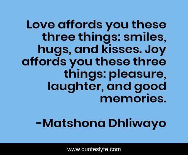 Love affords you these three things: smiles, hugs, and kisses. Joy affords you these three things: pleasure, laughter, and good memories.