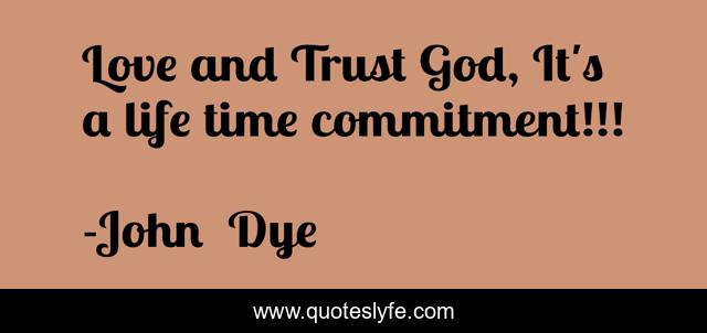 This page presents the quote "Love and Trust God, It's a life time commitment!!!". Author of this quote is John Dye. This quote is about tnt, abc, love, usa-network, god, tbs, prayer, cnn-news, cbs,.