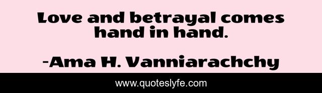 "Ama H. Vanniarachchy Quotes." Quoteslyfe.com, 2025. Mon. 08 Dec. 2025. <https://www.quoteslyfe.com/quote/Love-and-betrayal-comes-hand-in-hand-178981>.