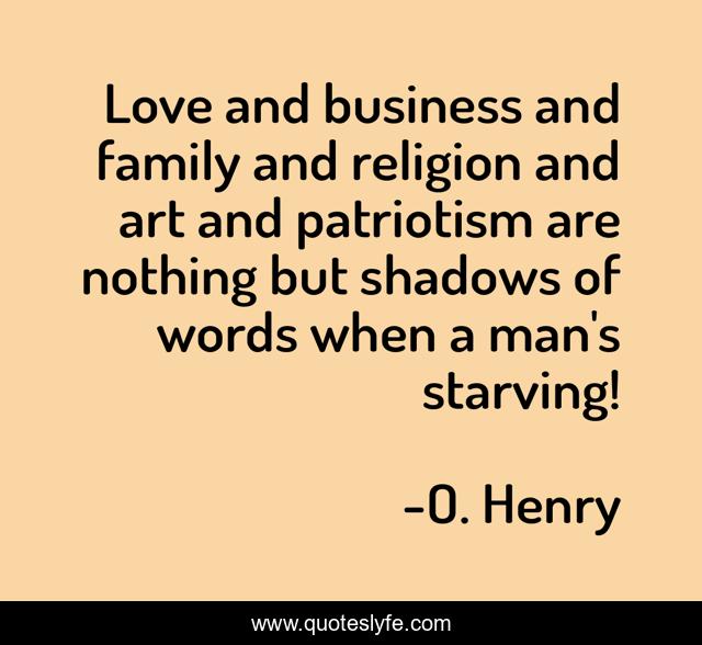 This page presents the quote "Love and business and family and religion and art and patriotism are nothing but shadows of words when a man's starving!". Author of this quote is O. Henry. This quote is about love, art, family, affection,.