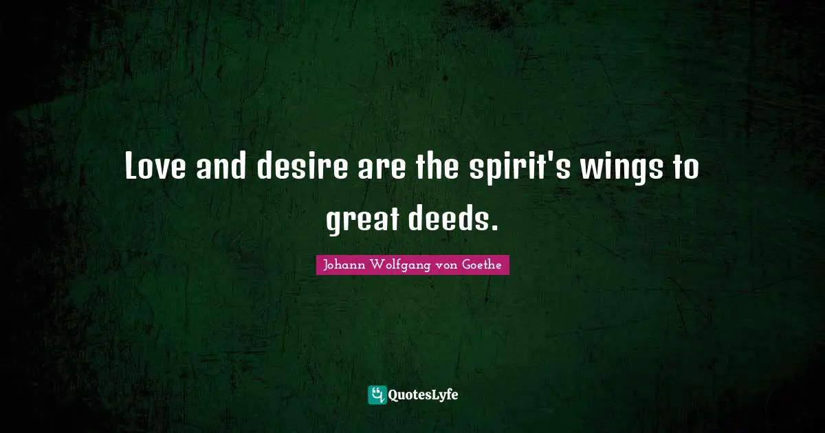 This page presents the quote "Love and desire are the spirit's wings to great deeds.". Author of this quote is Johann Wolfgang von Goethe. This quote is about great, love, wings, affection,.