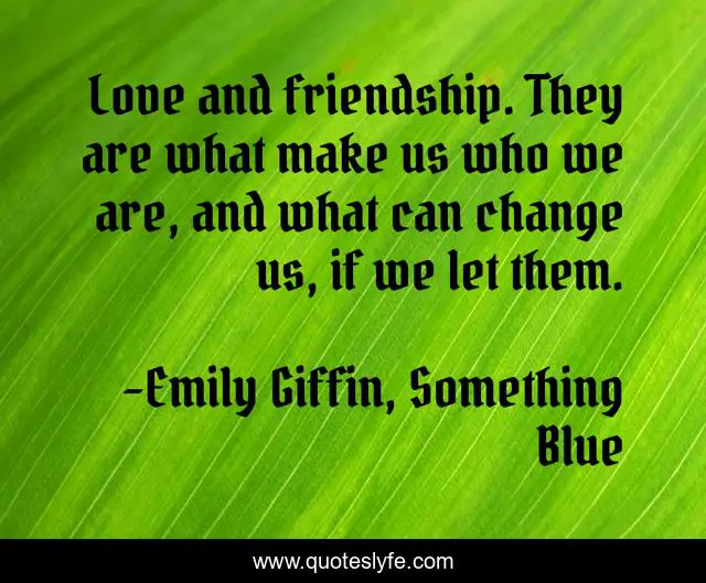 "Emily Giffin, Something Blue Quotes." Quoteslyfe.com, 2025. Mon. 08 Dec. 2025. <https://www.quoteslyfe.com/quote/Love-and-friendship-They-are-what-make-2675>.