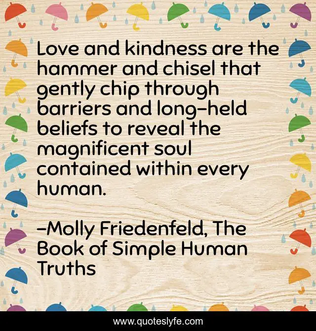 "Molly Friedenfeld, The Book of Simple Human Truths Quotes." Quoteslyfe.com, 2025. Fri. 05 Dec. 2025. <https://www.quoteslyfe.com/quote/Love-and-kindness-are-the-hammer-and-111630>.