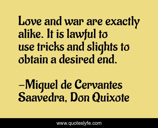 "Miguel de Cervantes Saavedra, Don Quixote Quotes." Quoteslyfe.com, 2025. Tue. 09 Dec. 2025. <https://www.quoteslyfe.com/quote/Love-and-war-are-exactly-alike-It-52773>.