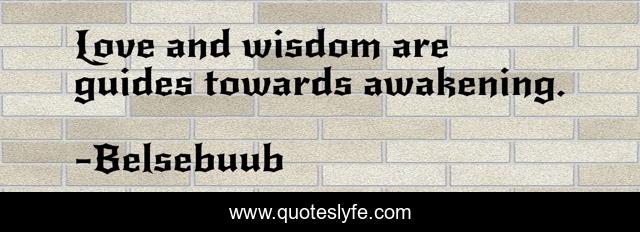 This page presents the quote "Love and wisdom are guides towards awakening.". Author of this quote is Belsebuub. This quote is about awakening, love, spiritual, affection, wisdom,.
