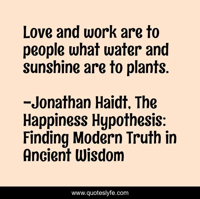 "Jonathan Haidt, The Happiness Hypothesis: Finding Modern Truth in Ancient Wisdom Quotes." Quoteslyfe.com, 2025. Mon. 08 Dec. 2025. <https://www.quoteslyfe.com/quote/Love-and-work-are-to-people-what-232393>.