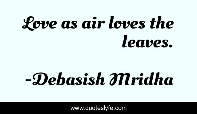"Debasish Mridha Quotes." Quoteslyfe.com, 2025. Tue. 09 Dec. 2025. <https://www.quoteslyfe.com/quote/Love-as-air-loves-the-leaves-69954>.