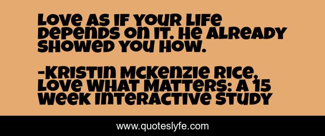 "Kristin McKenzie Rice, Love What Matters: A 15 Week Interactive Study Quotes." Quoteslyfe.com, 2025. Fri. 05 Dec. 2025. <https://www.quoteslyfe.com/quote/Love-as-if-your-life-depends-on-26195>.