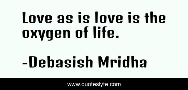 This page presents the quote "Love as is love is the oxygen of life.". Author of this quote is Debasish Mridha. This quote is about debasish, love, mridha, philosophy, debasish-mridha, oxygen-of-life, love-is-oxygen, affection,.