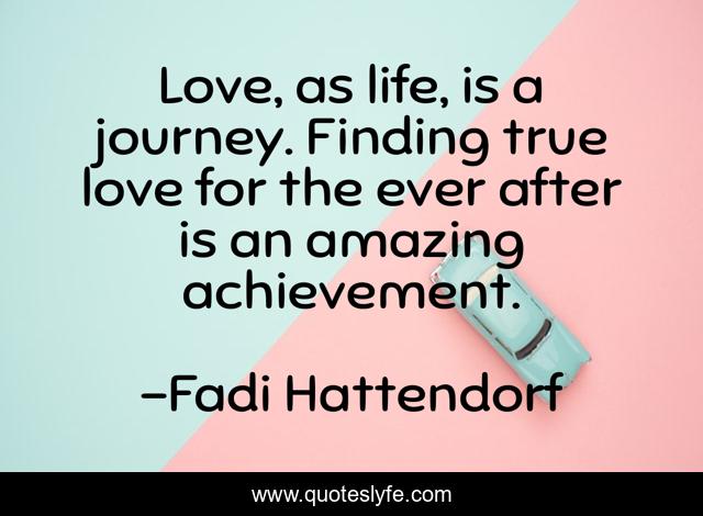 This page presents the quote "Love, as life, is a journey. Finding true love for the ever after is an amazing achievement.". Author of this quote is Fadi Hattendorf. This quote is about life, woman, love, success, relationship, wisdom, journey, achievement, affection,.