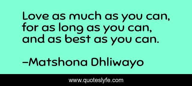 "Matshona Dhliwayo Quotes." Quoteslyfe.com, 2025. Mon. 08 Dec. 2025. <https://www.quoteslyfe.com/quote/Love-as-much-as-you-can-for-48620>.