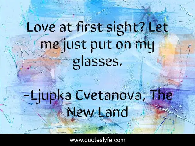 This page presents the quote "Love at first sight? Let me just put on my glasses.". Author of this quote is Ljupka Cvetanova, The New Land. This quote is about saying, aphorism, love, look, quote, love-at-first-sight, glasses, let, sight,.