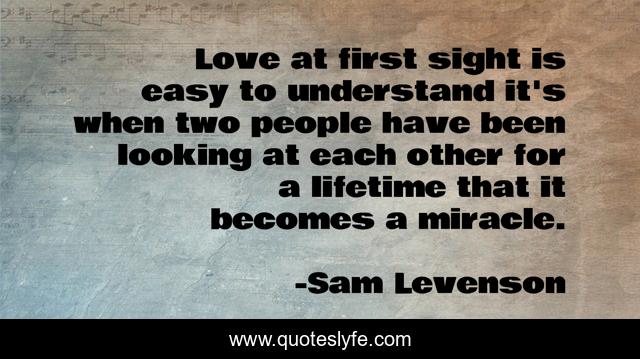 This page presents the quote "Love at first sight is easy to understand it's when two people have been looking at each other for a lifetime that it becomes a miracle.". Author of this quote is Sam Levenson. .