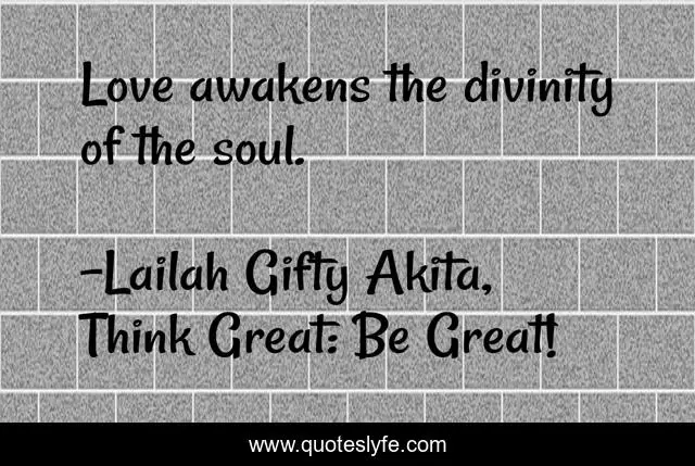 "Lailah Gifty Akita, Think Great: Be Great! Quotes." Quoteslyfe.com, 2025. Tue. 09 Dec. 2025. <https://www.quoteslyfe.com/quote/Love-awakens-the-divinity-of-the-soul-85160>.