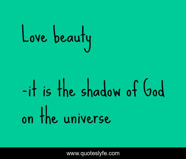 This page presents the quote "Love beauty". Author of this quote is it is the shadow of God on the universe. .