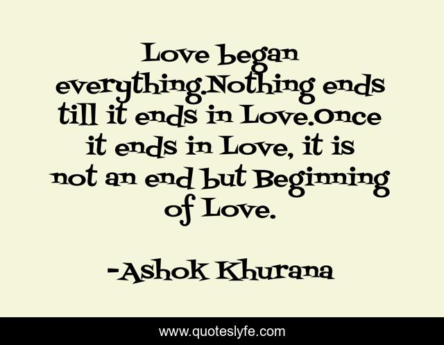 "Ashok Khurana Quotes." Quoteslyfe.com, 2025. Mon. 08 Dec. 2025. <https://www.quoteslyfe.com/quote/Love-began-everything-Nothing-ends-till-it-49760>.