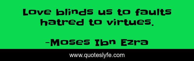 This page presents the quote "Love blinds us to faults hatred to virtues.". Author of this quote is Moses Ibn Ezra. .