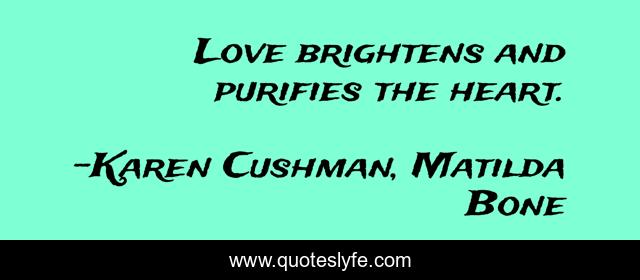"Karen Cushman, Matilda Bone Quotes." Quoteslyfe.com, 2025. Sat. 06 Dec. 2025. <https://www.quoteslyfe.com/quote/Love-brightens-and-purifies-the-heart-80700>.