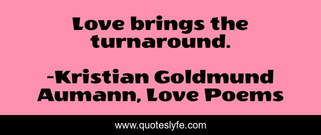 "Kristian Goldmund Aumann, Love Poems Quotes." Quoteslyfe.com, 2025. Tue. 09 Dec. 2025. <https://www.quoteslyfe.com/quote/Love-brings-the-turnaround-209734>.