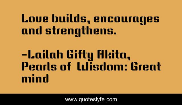 "Lailah Gifty Akita, Pearls of Wisdom: Great mind Quotes." Quoteslyfe.com, 2025. Mon. 08 Dec. 2025. <https://www.quoteslyfe.com/quote/Love-builds-encourages-and-strengthens-95031>.