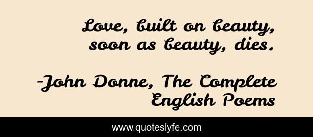 "John Donne, The Complete English Poems Quotes." Quoteslyfe.com, 2025. Tue. 09 Dec. 2025. <https://www.quoteslyfe.com/quote/Love-built-on-beauty-soon-as-beauty-60565>.