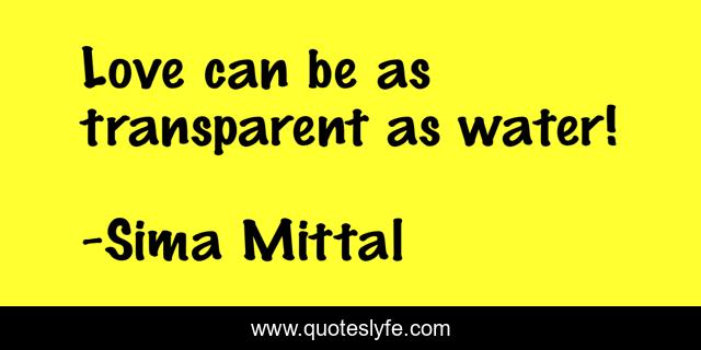 "Sima Mittal Quotes." Quoteslyfe.com, 2025. Sat. 06 Dec. 2025. <https://www.quoteslyfe.com/quote/Love-can-be-as-transparent-as-water-232347>.